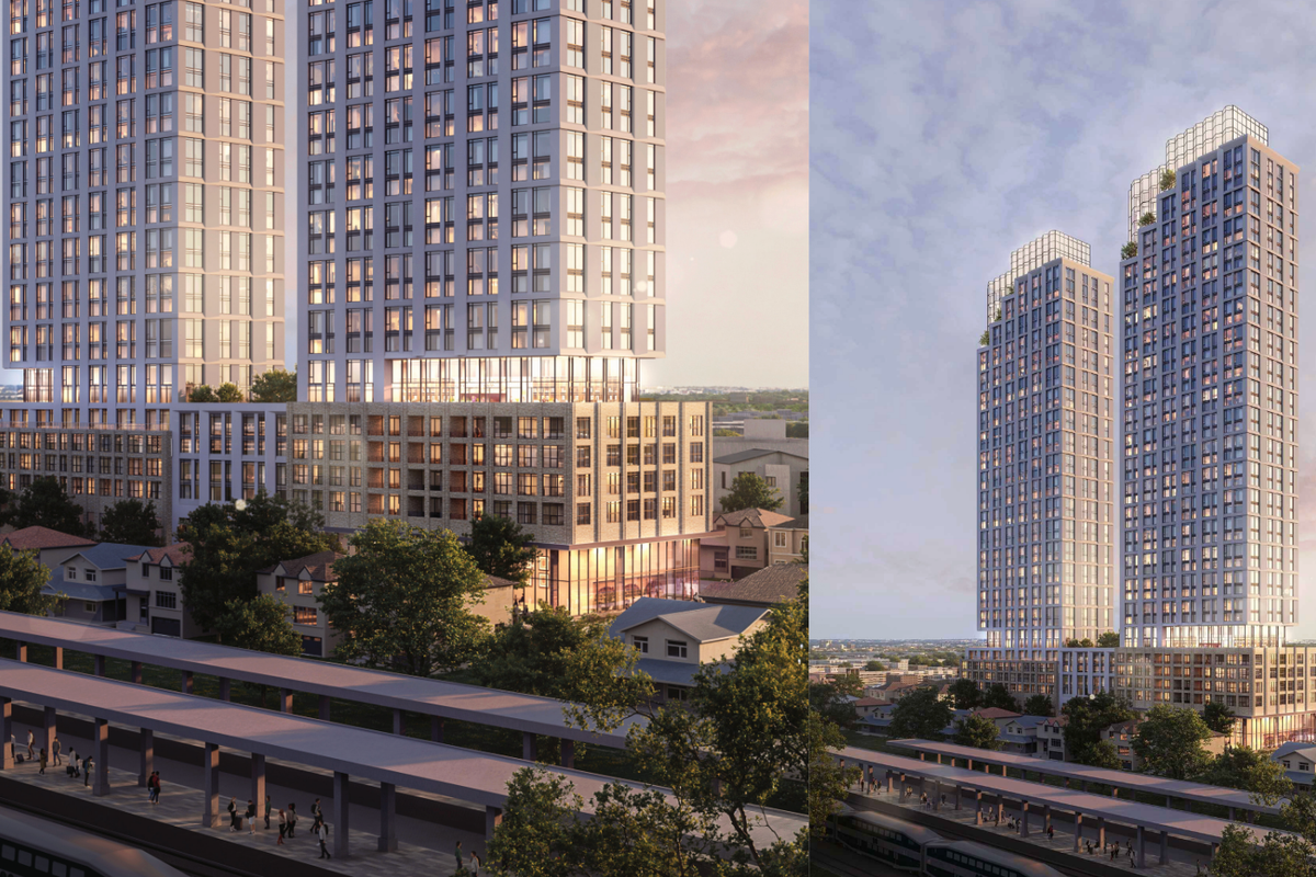 Elysium Investments has filed plans for a 43- and 41-storey residential development within walking distance of the Mount Dennis station on the forthcoming Eglinton Crosstown LRT. The plans call for two towers containing 851 rental units and a 2,152-sq.-ft Privately Owned Publicly Accessible Space (POPS) located onsite.